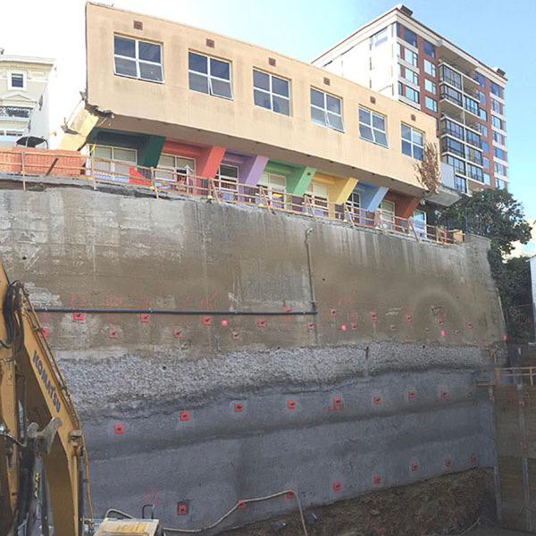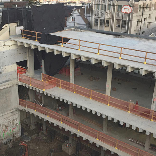 Given the densely populated area and zoning requirements, the only option was to move forward with the subterranean expansion into the side of the steeply sloped site, partially below the existing building. The structural engineering solutions required to support building a subterranean structure while preserving existing structures directly above and nearby called for creativity and a commitment to safety, innovation, and a high standard of structural engineering design. In total, the expansion added the equivalent of four stories (a double-height expanded gym and a double-height theatre below) to help the Hamlin School achieve its goal of facilitating needed programs for students and the community.